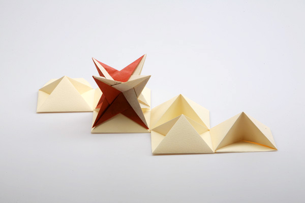 Assia Brill hat ihr Wirken ganz der Tradition des modernen japanischen Origami verschrieben, das in verschiedenste dekorative Formen wie Gebäude und Vasen mündet. Ihre persönliche Spezialität sind drehbare Objekte, deren Flexibilität aufgrund der Verwendung zweifarbiger Papiere besonders stark zur Geltung kommt.