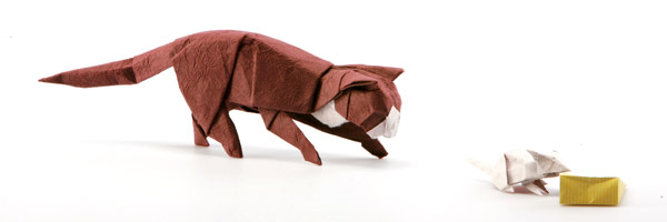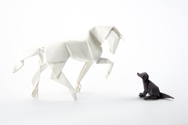 Zwar fertigt auch Dave Brill traditionelle Origamis in Form von geometrischen Körpern, außergewöhnlicher aber sind seine nassgefalteten Tiere, die in ihrer organischen Körperlichkeit einen hohen haptischen Reiz ausstrahlen. Bei dieser selten angewandten Technik werden schwerere Papiere vor dem Falten angefeuchtet, was dem Werkstoff eine gewisse Modellierbarkeit verleiht und ihn zu einer stabilen Form trocknen lässt. Darüber hinaus fängt Dave Brill seine malerische Umgebung nahe Manchester immer wieder mit Pinsel und Farbe ein. Im Lauf der Jahre ist so ein facettenreicher Reigen von Impressionen quer durch die Tages- und Jahreszeiten entstanden. So schlägt die Vielfalt dieser Zusammenschau eine veritable Brücke zwischen den europäischen alten Meistern und der modernen japanischen Origami-Tradition.